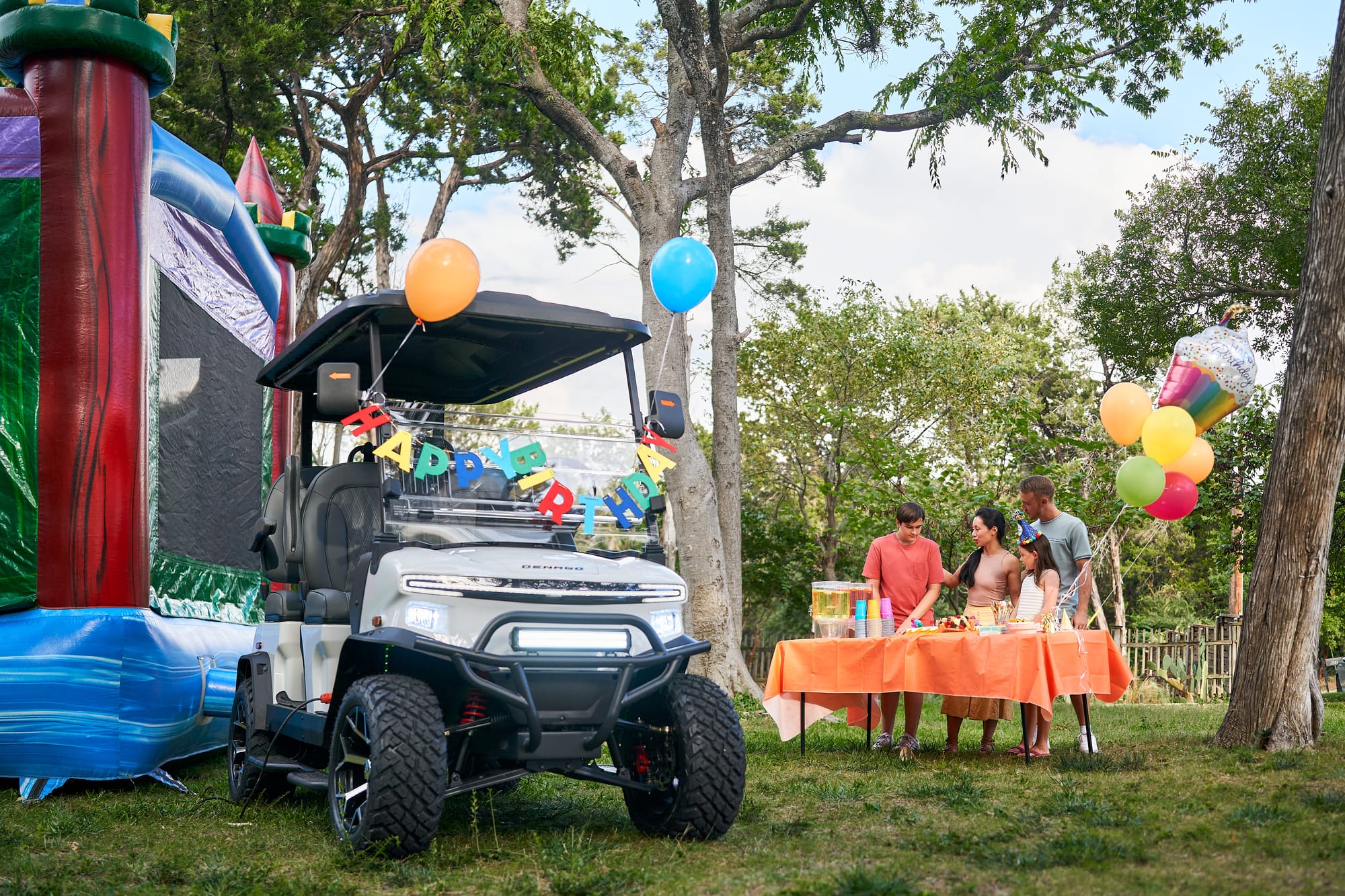 Power outage at the warehouse. A bounce house in a park. A cup of coffee during a hurricane. The inverter keeps proving the same point: your Denago isn’t just a golf cart. It’s a power station on wheels.