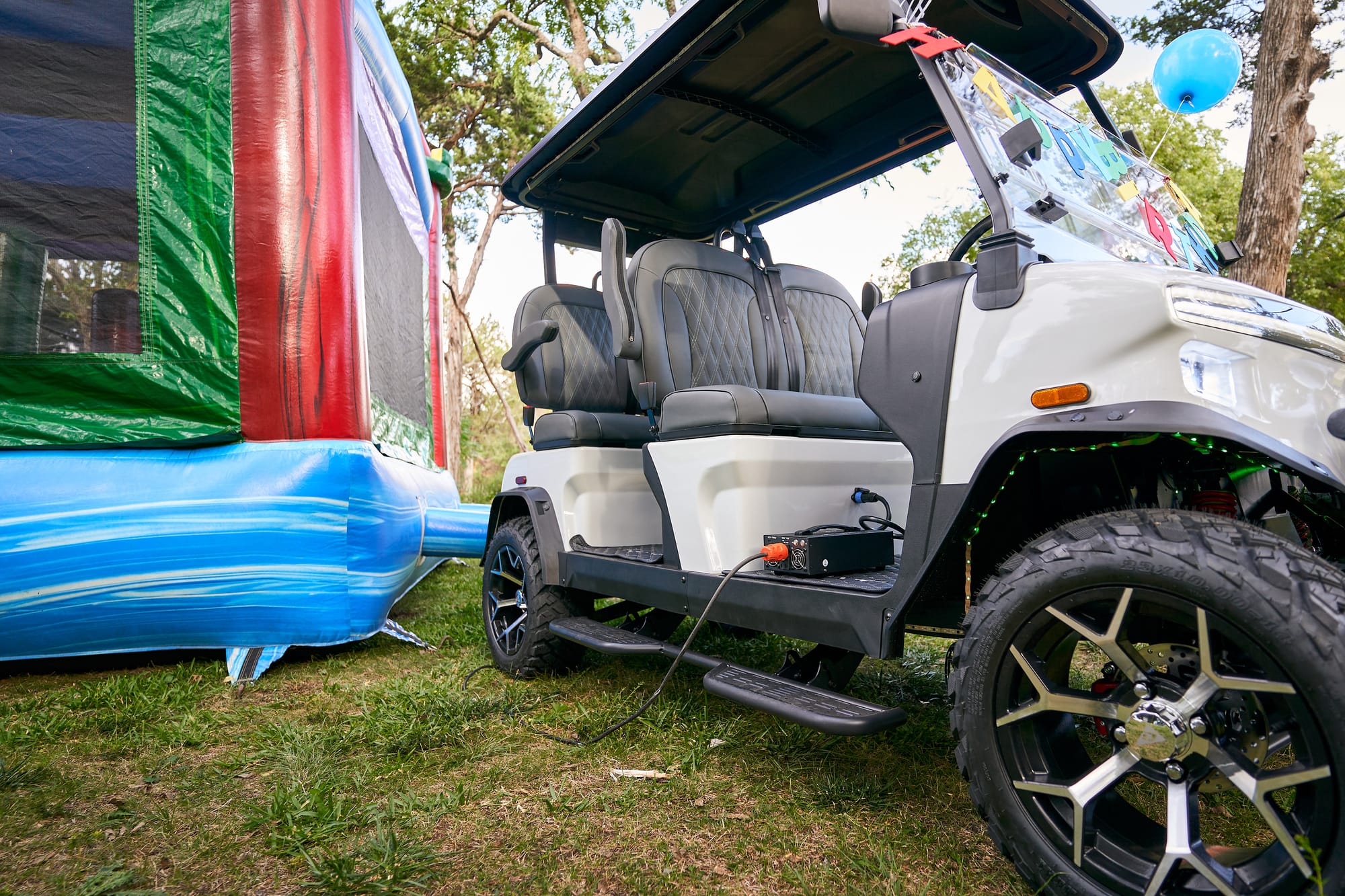 This wasn’t even the first time the inverter saved the day. When we filmed the Rover XL commercial, we needed power for a large bounce house in the middle of a park — no outlets in sight. So we plugged it into one of our carts. Kids had a blast, the shoot went off without a hitch, and the cart barely broke a sweat.